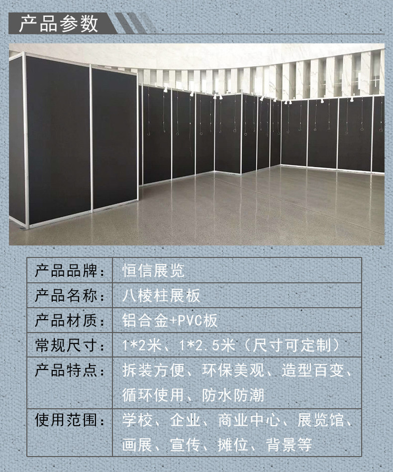 常熟市沙家浜镇安丰工程材料厂 主营无缝展板、八棱柱展板、折叠展板、吊轨展板以及标摊展位